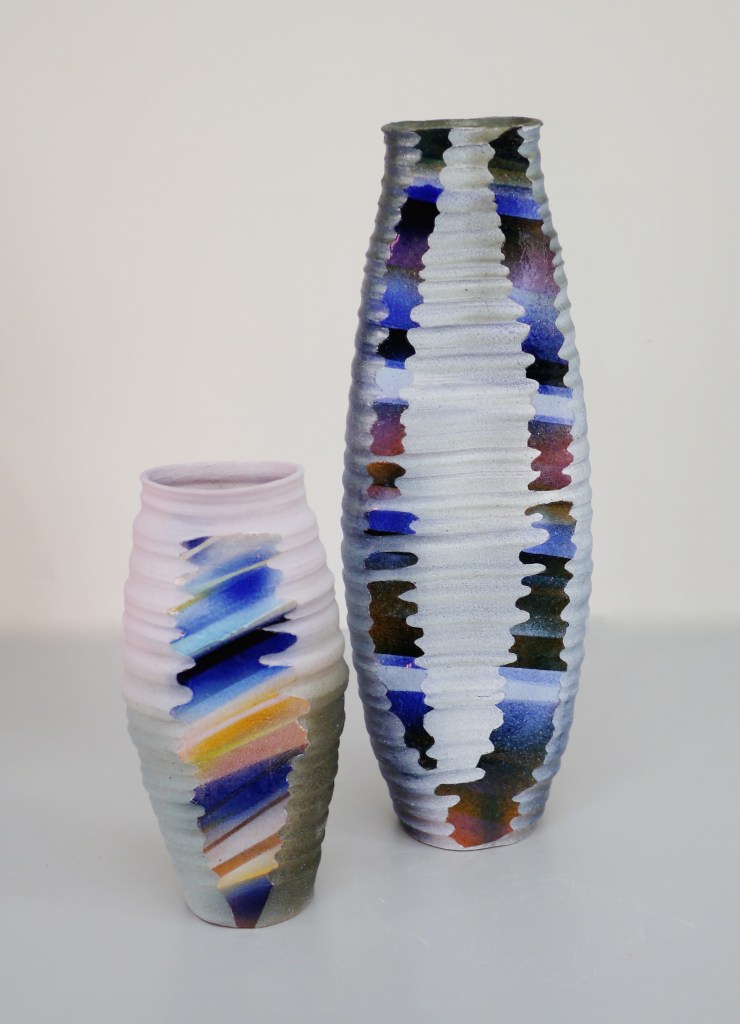 Earthenware, engobe, glazes, 2017 55x18x9; 28x15x11